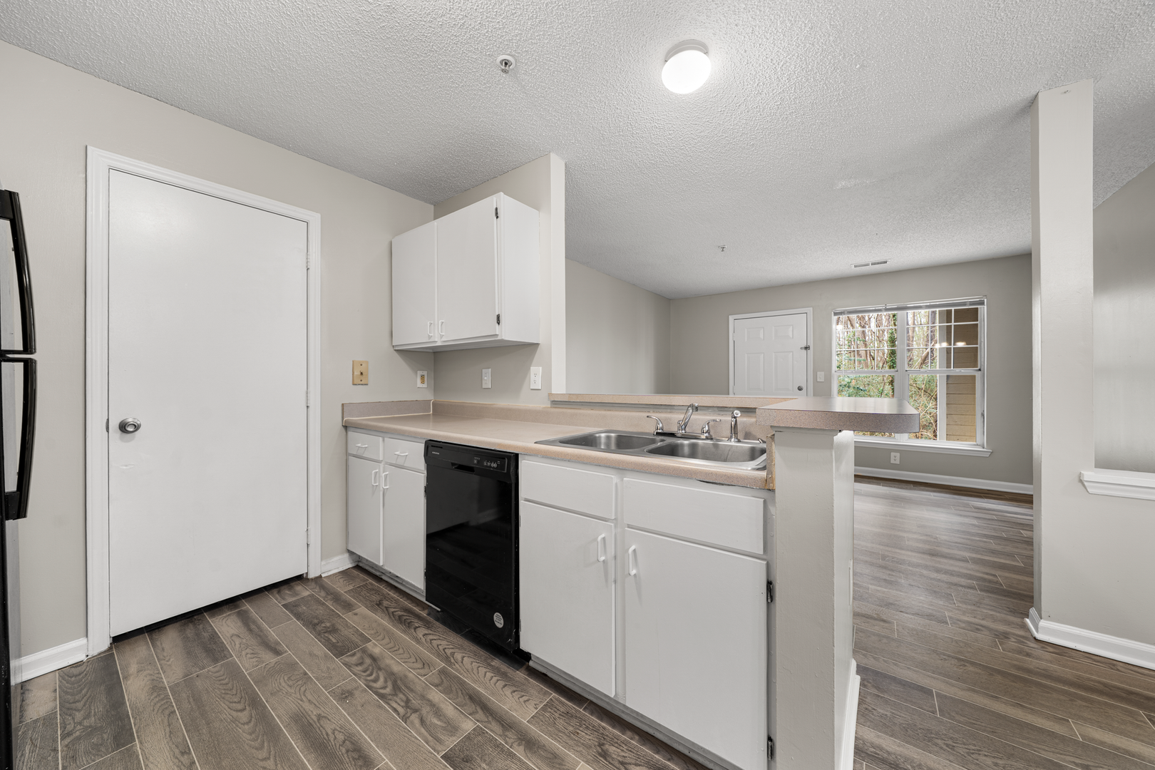 Inside, you’ll appreciate the convenience of washer and dryer hookups, giving you the flexibility of in-home laundry on your schedule. Generous floor plans offer a balance of LVP flooring for common space and carpeted flooring in the bedrooms. The kitchen features a refrigerator, electric-range oven, and dishwasher for added convenience.